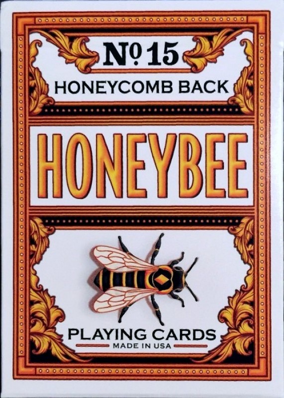 It's time to give your moves and routines a boost of extra sweetness with Honeybee Playing Cards - the first-ever deck from Penguin Magic. Designed by Randy Butterfield, the Honeybees are our nod to a traditional Bee-style deck. Instead of a diamond pattern, the deck features a borderless honeycomb pattern complete with 2 realistic honeybees walking on the back. You can almost taste the honey as you gaze at the golden yellow backs! The faces are traditional Bee-style faces with an all-new Beehive Ace of Spades and Beekeeper Jokers, plus a deeper high-roller red on the Hearts and Diamonds plus a new color-scheme and background pattern on all of the court cards. These cards handle like a DREAM. They are printed on US Playing Card's embossed Bee stock with their Grade-A "Magic" finish for ultimate fanning, spreading, durability, and longevity. They have also been traditionally cut (the blade goes through the face side) which makes table faro shuffles and other gambling moves significantly easier to accomplish. We have even included 2 special double-backer cards that you can use for creative magic routines or as cut cards during your weekly poker game!