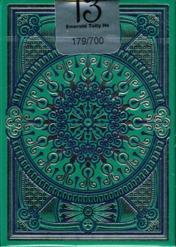 Tally Ho is a brand that is more than 100 years old and it is my privilege to create my third Tally Ho deck. The Emerald Tally Ho deck is the second deck in my my limited edition Tally Ho series. The first deck, the Scarlett Tally Ho, was inspired by my youngest daughter who is also named Scarlett. The Emerald Tally Ho deck is inspired by my oldest daughter Claire. The Emerald theme comes from Claire's birthstone. Starting with the same basic design structure, as the Scarlett Tally Hos, the Emerald has a completely redesigned back and tuck. The same limited edition courts have been used with new design and color styles to match the new Emerald theme.