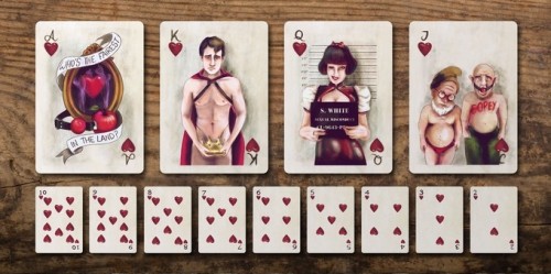 Inspired by the classic fairy tale characters that we all love, the Once Upon A Time deck of playing cards takes a darker look at an old story. Re-examined through the eyes of an adult, each suit weaves together tales of misbehavior, misconduct, and general mischievousness. These aren't the same bedtime stories your mother told you!