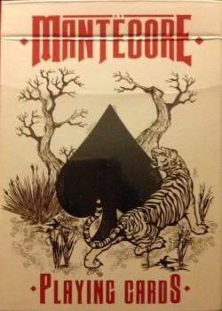 Magicians, cardists or poker players-Mantecore Playing Cards will suit your needs. Mantecore sports an original and striking back design with custom aces, pips and court cards. These cards will also last longer than your average deck as they are printed by the good guys at Legends Playing Cards Company.