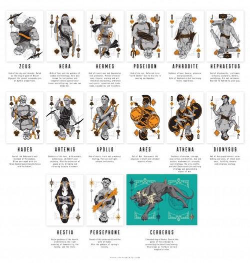 My goal when creating the Olympia Deck was to capture the beauty of Greek sculptures in a new medium of playing cards while simultaneously updating it with a graphic twist. I aim to make this deck worthwhile enough to be given as an offering to the altars of the Gods.