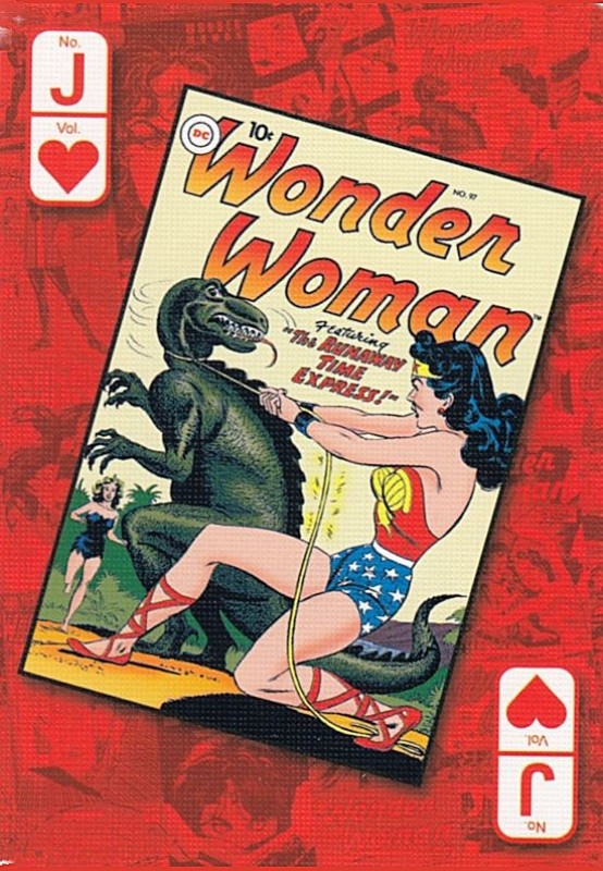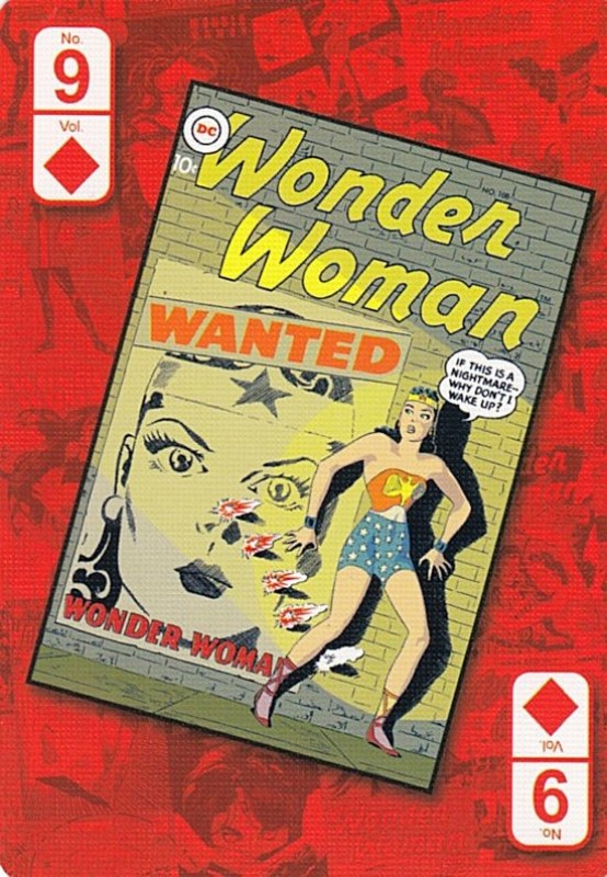 Images of covers of Wonder Woman comic book alternate with images of Wonder Woman throughout the years. Images of all the cards can be seen http://www.marytcusack.com/maryc/Cards/WonderWoman2.html