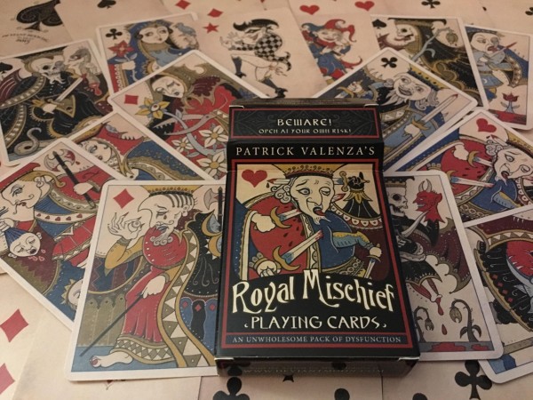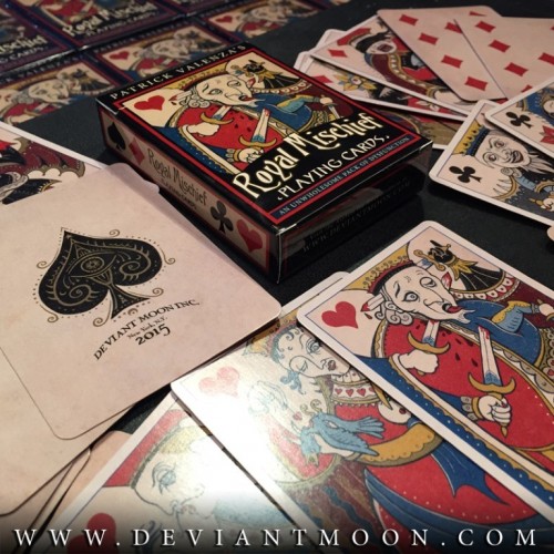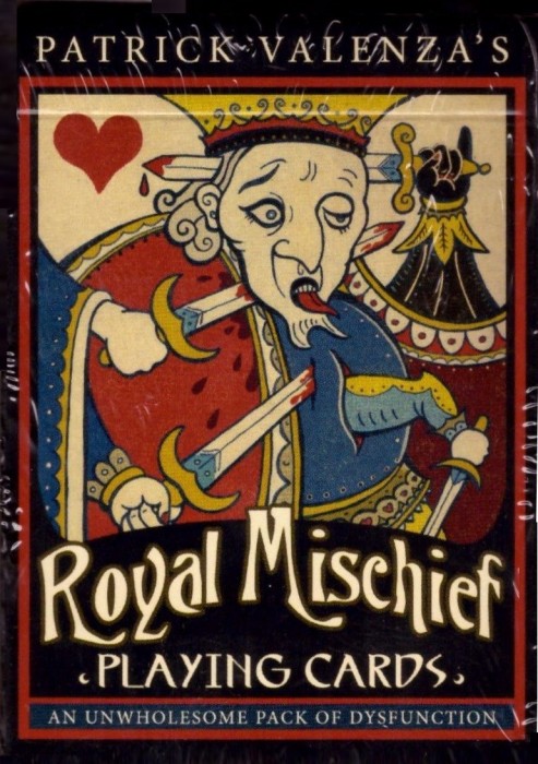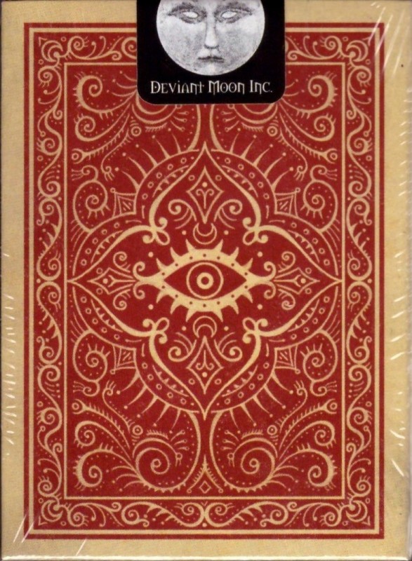 This self-published medieval styled deck consists of 54 cards including two naughty Jokers, from Patrick Velenza (Deviant Moon) in a style similar to his well received 2008 tarot deck Deviant Moon. Per direct update from the artist, just 500 were printed (original plan as mentioned via twitter of 777 was reduced in actual printing). Patrick was also known to include 2 randomly selected transformation cards (out of a confirmed 28 available) which he created that have the same back as the deck with each order. The deck came shrinkwrapped with the seal on the shrinkwrap with any bonus transformation cards added outside of the tuck in the shipment packaging.