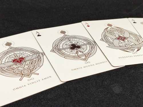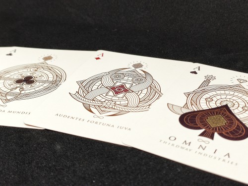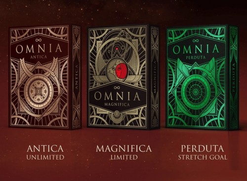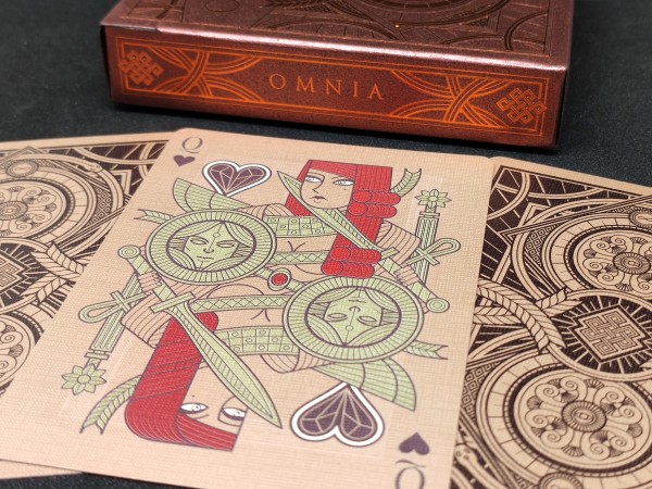 Three new custom decks of the Omnia Series by Thirdway Industries, designed by Giovanni Meroni and proudly printed by Expert Playing Cards Co. with Classic Finish. Based on the ancestors of the first Omnia, these decks will throw you in the Golden Age of the Omnia universe, full of treasures, heroes and war. Wealth, power and abundance
