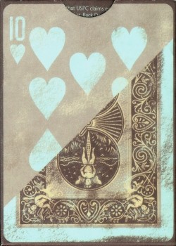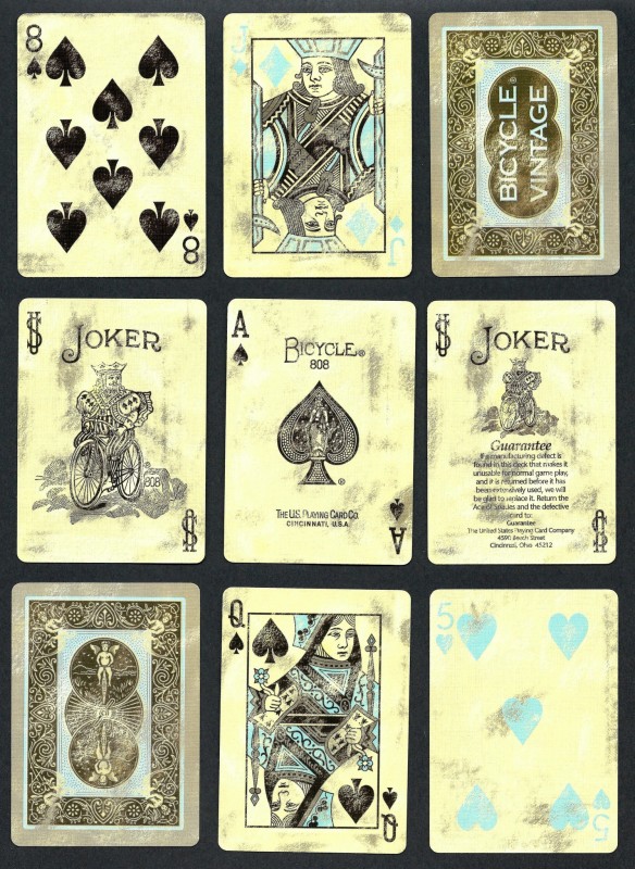 Designed by Vincenzo Di Fatta, these faded vintage teal & brown backed cards are officially printed by the U.S. Playing Card Company. Features a faded vintage teal & brown colour scheme and unique style face cards.