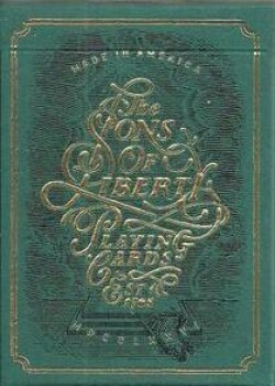 The tuck box features sculptural embossing in both bronze and pewter foil. The cards themselves feature a plethora of masonic imagery, a Liberty Tree ace of spades, and a tax stamp seal. A handful of the Son's most patriotic members are represented on the court cards in 18th century style etching. Furthermore, the stock itself has undergone the unique crushing procedure, propietary to Art of Play.