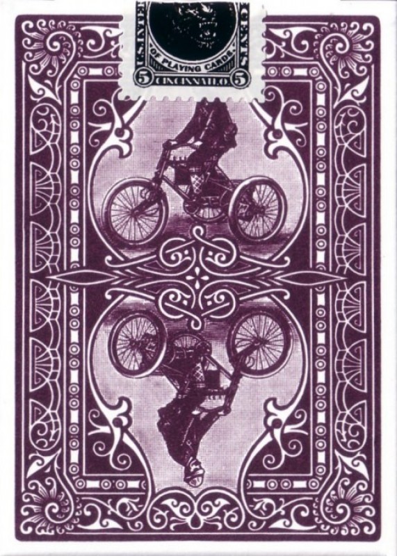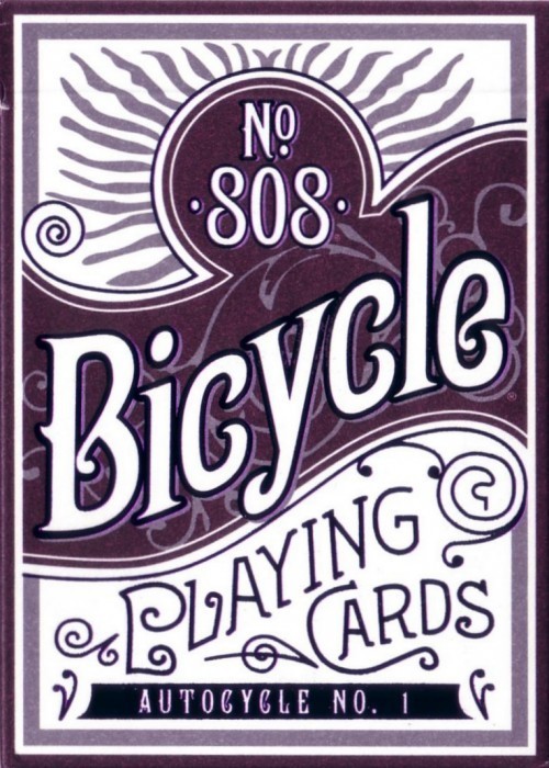 An American original, the Bicycle® brand celebrates over 130 years of playing card history with the reproduction of an early card back design called Autocycle #1 produced from 1901-1906. The intricate design depicts a rider on a motorized bicycle. The graphics used on the box design were inspired by hand-drawn elements from an 1892 Bicycle® Juniors deck.