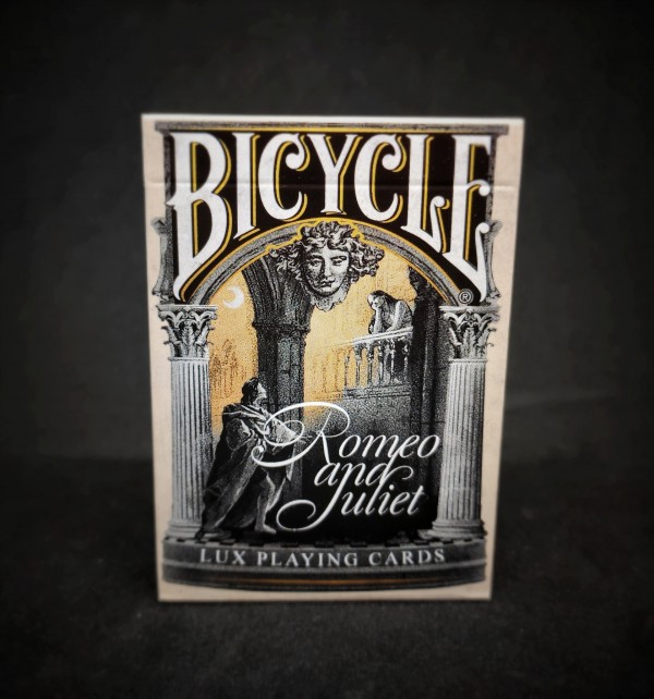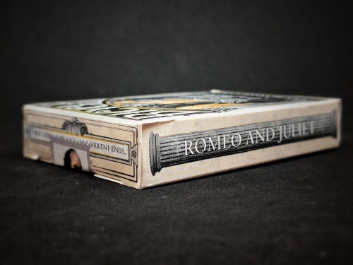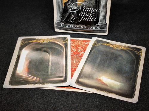 This is Montague vs Capulet, a stunning new Bicycle branded playing card deck, inspired by William Shakespeare’s tragedy, Romeo and Juliet. This is a fully custom deck with an elaborate card back and 2 different tuck cases.
