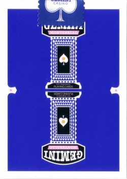 Gemini features LPCC’s embossed Classic Finish stock, a more “papery”, soft stock that requires no break-in time. Combining that with perfect printing registration, thin borders and smooth edges, achieved by LPCC’s Diamond Cut process, this deck is the ideal choice for any professional card handler.