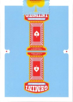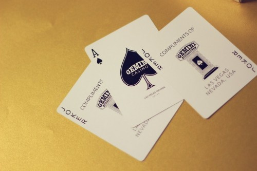 Gemini is a fictional casino deck inspired by treasured classics like Jerry's Nugget and Dunes Casino playing cards. Created by Estonian multimedia designer, magician and card flourisher Toomas Pintson, Gemini was made to look like a vintage deck you might find in an old Las Vegas warehouse from the ’70s.