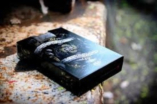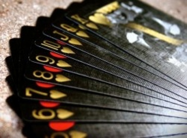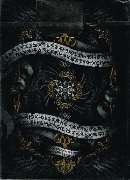 From the site: \"This is the Black Arcane deck strategically laced with metallic GOLD ink. The Gold Arcane Deck will be the first casino-grade deck from USPC specifically engineered for those who adore the glint of GOLD appearing to emanate from each and every card. Even at a glance