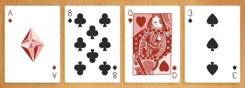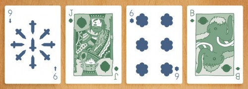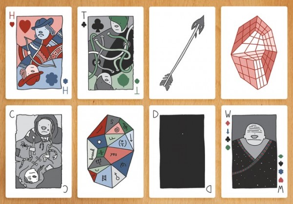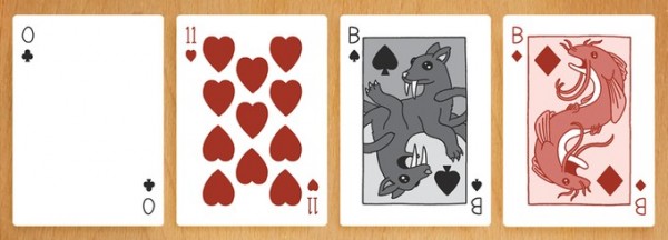 Created by Travis Nichols, this 160 card deck contains the standard suits Diamonds, Clubs, Hearts and Spades, but adds Knives, Acorns, Clouds and Planets. In addition, it includes A-K, plus 0, 11 and Beasts for a total of 16 cards in each suit. Plus 4 jokers.