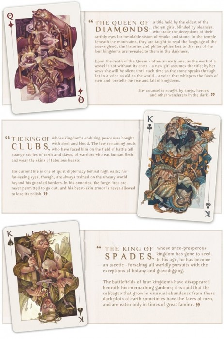 Wicked Kingdom is an art-rich 54-card poker deck, featuring dual-identity face cards with a narrative twist and obsessively detailed, hand-painted artwork throughout that features a dark fantasy world populated by a cast of strange and complex characters www.kickstarter.com/projects/wyliebeckert/wicked-kingdom-illustrated-playing-cards-by-wylie www.kickstarter.com/projects/wyliebeckert/wicked-kingdom-illustrated-playing-cards-by-wylieCOMPANY:Wylie Beckert