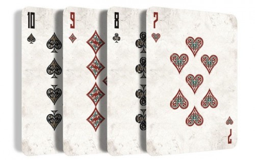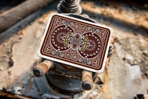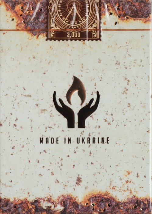 The Chernobyl Limited ed. holds 54 poker sized playing cards (52 + 2 jokers). It is a combination of copper pigmented pantones and metal copper foils, used to simulate rust and an iconic artwork that is sure to leave a lasting impression with the addition of embossing effects. The tuck case itself is sturdy and designed with heavily corrosive corners here and there. At the bottom of the artwork the Chernobyl monument with the firemen is represented as a commemorative basis for the artwork.