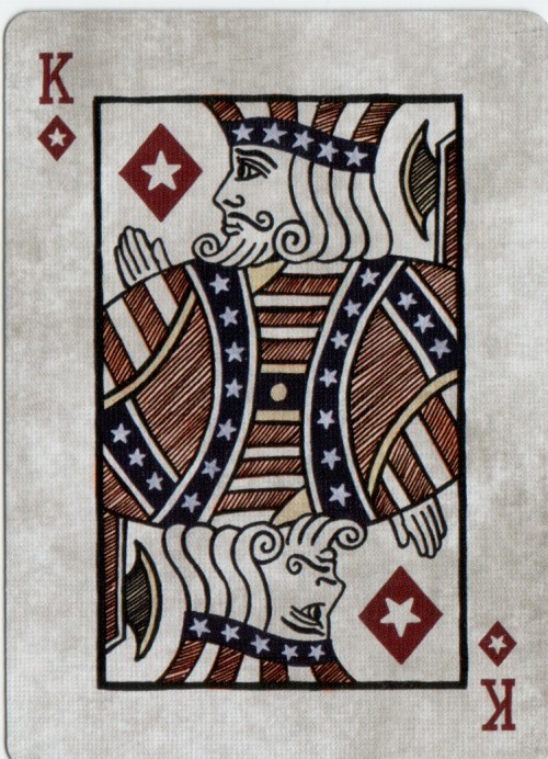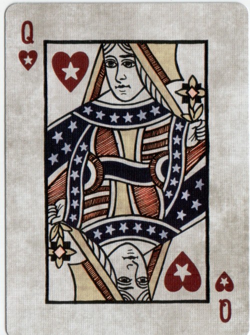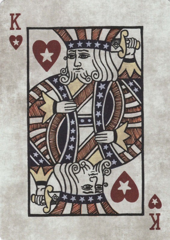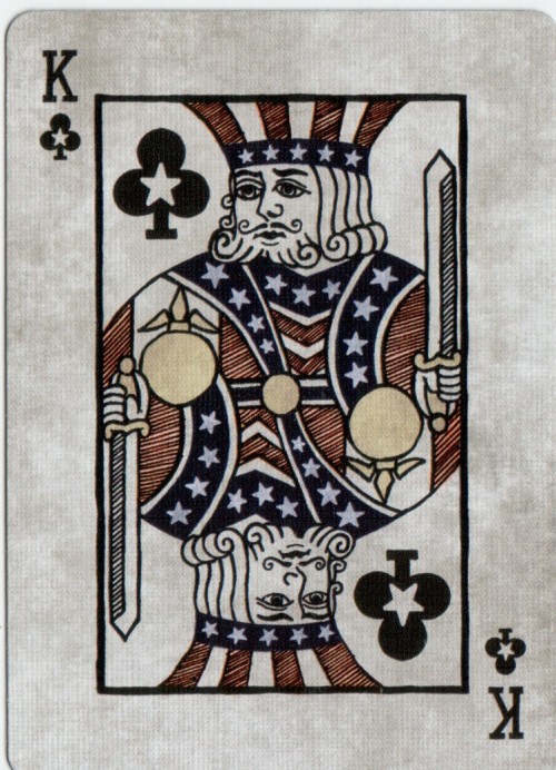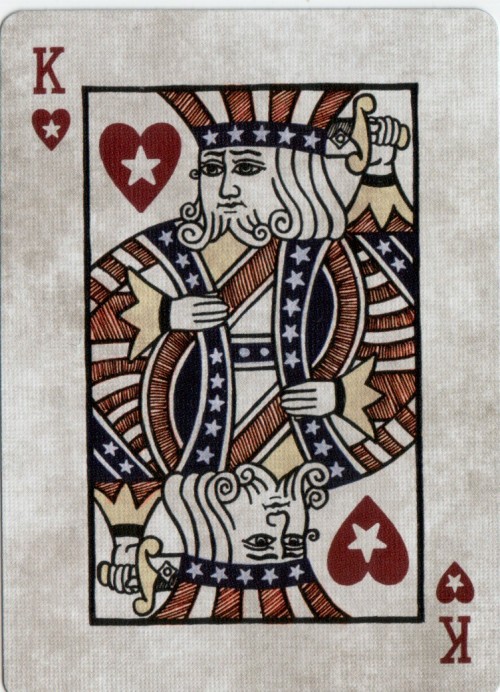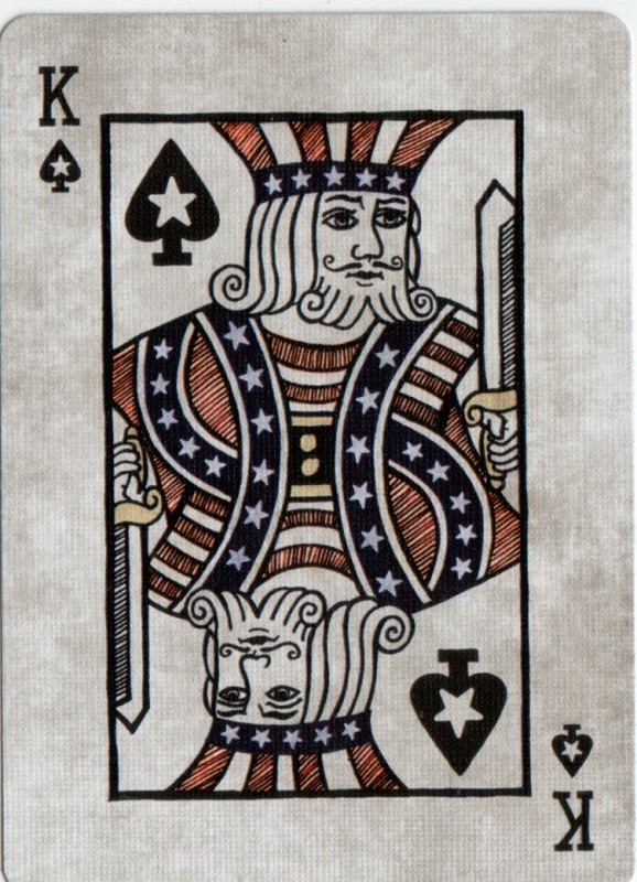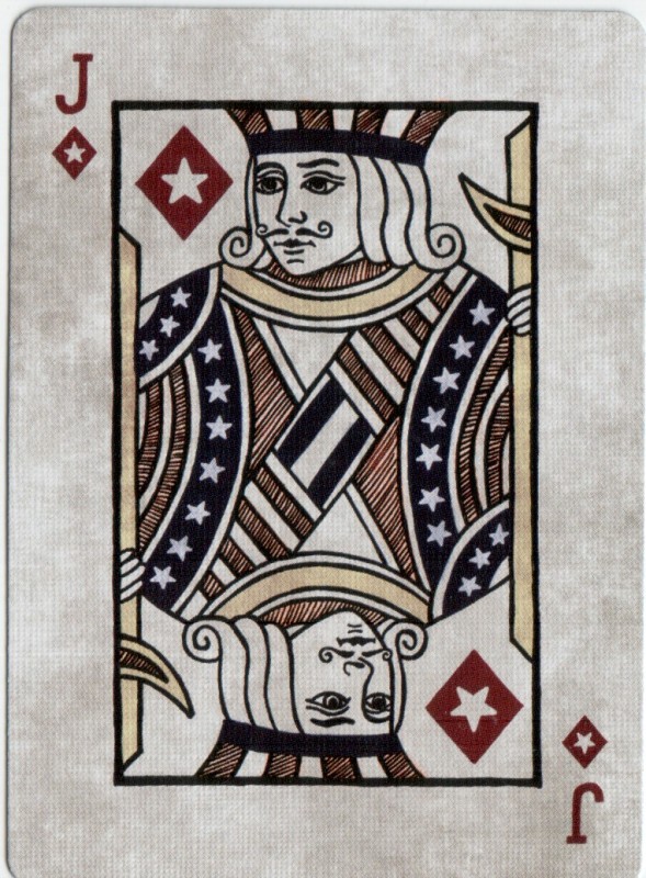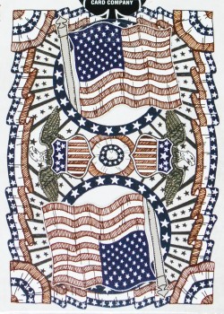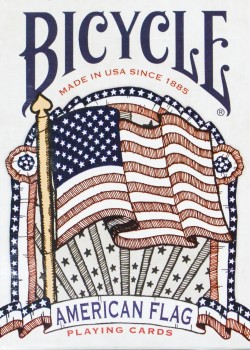 A whole new way to show your patriotism. Bicycle® is an iconic American brand proudly made in the USA for over 130 years. The Bicycle® American Flag Playing Cards celebrate our American heritage and history. These hand-illustrated cards feature images of the stars and stripes in unique pips and face cards, and include references to the brand's historical card back and tuck design. Hand drawn style Unique court cards and pips (Club, Heart, Spade, Diamond) Classic Air-Cushion Finish® Printed on premium Bicycle brand cardstock and Made in USA!COMPANY:USPCC