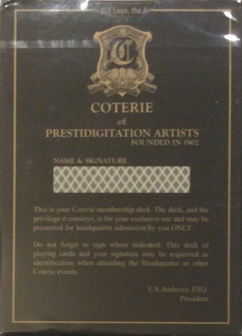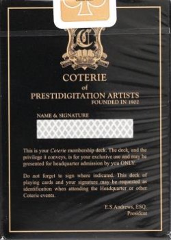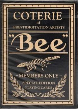 Zenneth Kok and the Coterie of Prestidigitation Artists (www.coterie1902.com) information: \\\'We designed the Coterie Bee Gold Edition in year 2011 with its color variations and themes, the original Gold Edition was considered by many as the most elegant Bee playing cards ever conceived. 900 decks out of the initial 5200 decks run were sealed and reserved for Artiste and higher classes members of Coterie of Prestidigitation Artists. After Coterie Bee Gold Edition was sold out, we planned to proceed with new edition of Coterie Bee. However, after over a year of correspondence and negotiation, USPCC informed us that they will not print Coterie Bee anymore nevertheless. We had to discontinue the Coterie Bee series and subsequently decided to abandon the Gold Seal Coterie Bee playing cards as part of the Artiste membership package. 650 decks of Gold Seal Coterie Bee playing cards will now be made available for purchase, after they were gone, the remaining stock will become part of our special promotion offer.\\\'