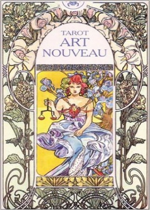 Art Nouveau ('New Art') was a style of architecture and decoration, as well as an art movement, developed in Europe and the USA in the late nineteenth century. The style was characterised by ornate stylised patterns of leaves, flowers and vines. Art Nouveau was not limited to paintings - it was aimed at removing the barriers between 'major' and 'minor' arts, unifying art, and centring it around people, and influenced graphics, architecture, furniture and even jewellery design. The Tarot Art Nouveau was influenced and inspired by the Art Nouveau movement, and its coloured ink drawings on the cards are elegant, flowery and ornate. Every scene is adorned and decorated with floral wreathes and symmetrical, natural arrangements.COMPANY:Lo Scarabeo