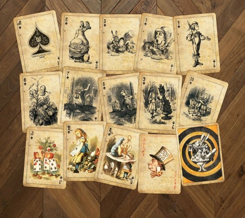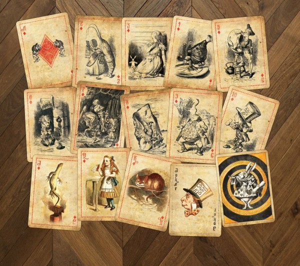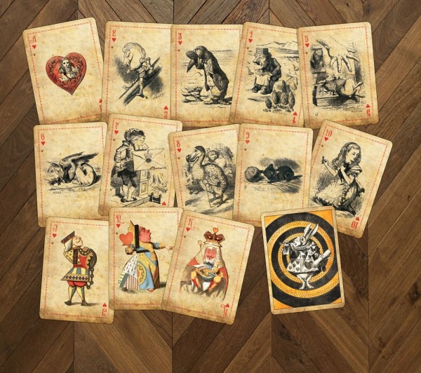 A lovely deck of playing cards featuring the classic Tenniel illustrations from Alice in Wonderland and Through the Looking Glass.