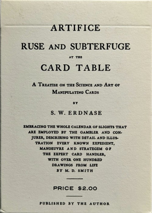 The high quality and elegant deck comes in a unique, hand assembled card box, a replica to the classic book by S.W. Erdnase.
