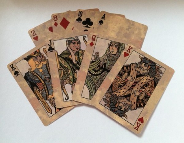Print-on-demand decks from Elmore Productions. Larry Elmore art on card backs with fantasy-themed courts by Steve Ellis.