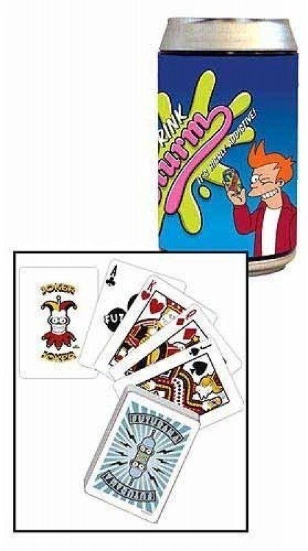 Deck originally comes in Slurm Soda can. Features Futurama characters as court cards.