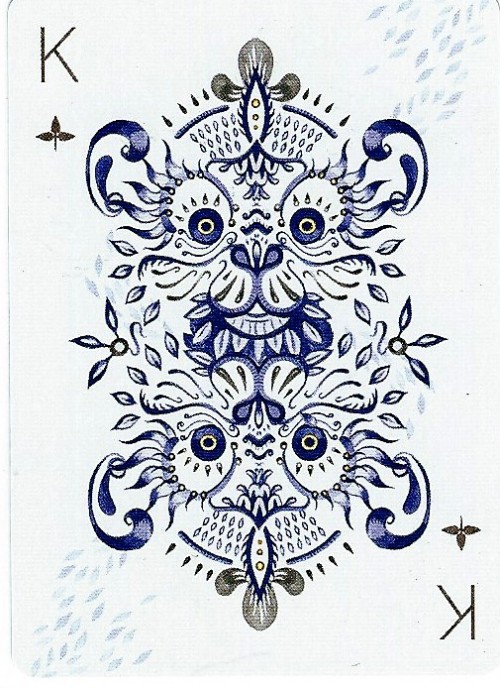 Porcelain Chinese Zodiac Edition The Blue & White Porcelain deck was designed and illustrated by Shann Larsson as part of a project between the SCAD Collaborative Learning Center and the Legends Playing Card Company. The ‘Blue & White Porcelain’ deck features hand painted and digitally refined illustrations that are inspired by traditional Chinese blue and white ceramics. To mimic this as closely as possible, we have printed Spot UV varnish over certain parts of each card back as well as the tuck box, giving the artwork a highlight and shine that enhances the color and gives the cards that extra special, yet subtle, elegant touch. We can now offer this print service to any of our customers who want a similar feature for their artwork. Thematically, the design references the twelve animals of Chinese astrology. The zodiac animals of each face-card were individually hand painted in watercolor, with their edges digitally refined to create a clean, modern, yet subtly traditional work of art. Pattern like abstractions both construct the face-cards and serve as decorative embellishments to the tuck. The deck's geometric and organic forms also draw inspiration from modern Scandinavian porcelain. The deck is a fusion of east and west, much like the city from which the deck was born – Hong Kong. The home of Legends Playing Card Co., bring you a new standard to playing card quality and innovation. Printed in a limited print-run of around 1,000 decks, this is a truly special piece of art and design that you can hold in your hands!
