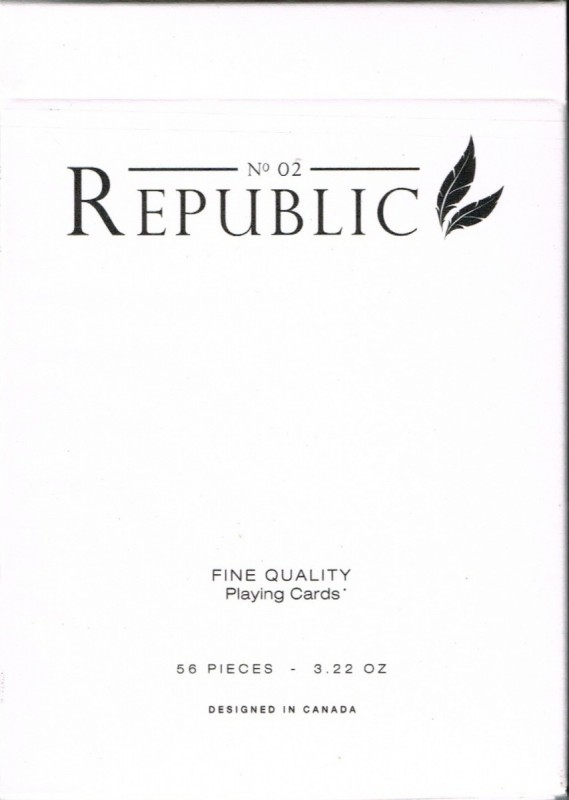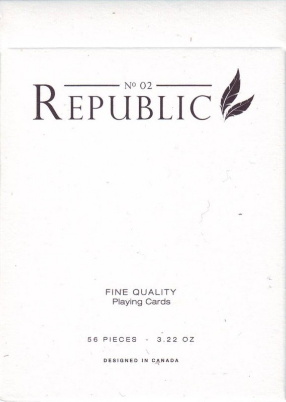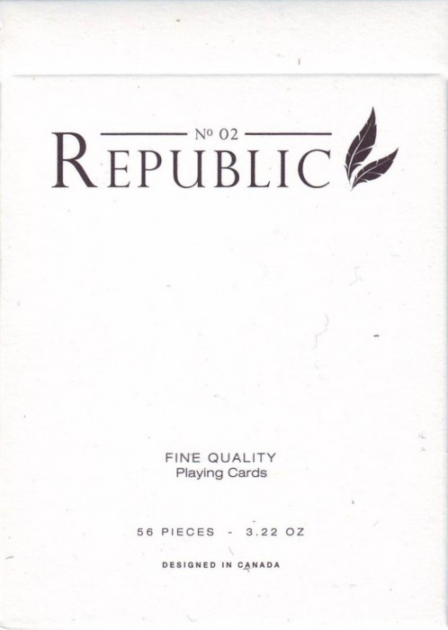 Republic No.2 Playing Cards by Illusionist. 2014. Republic #2 is the second release in the Republic brand, following the original 'Sultan' Republic and it's special edition, the Sultan Republic: Treasury. Designed by Mike Clarke.