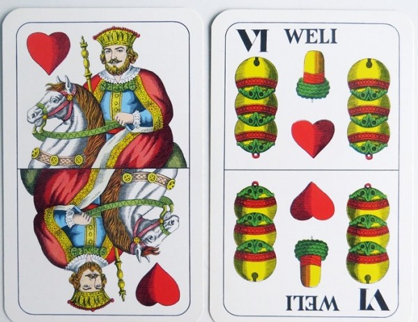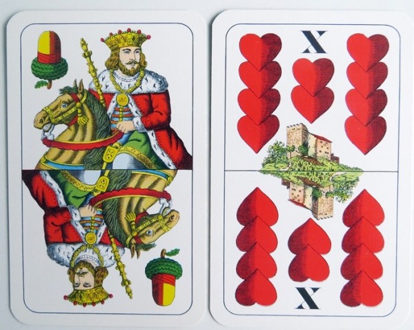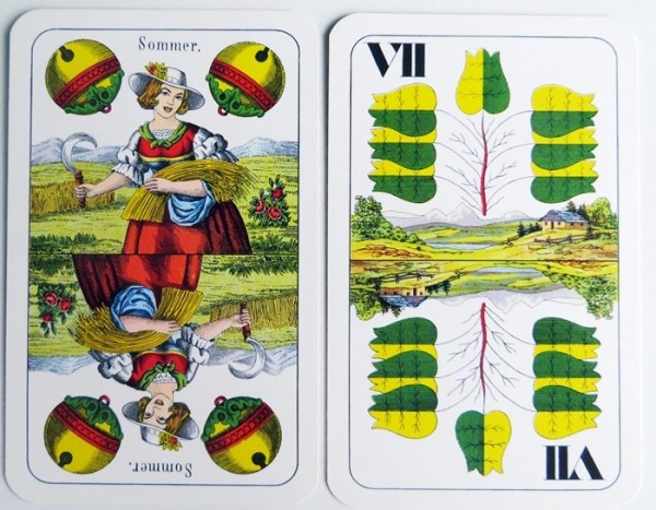 Odd sized 33 card deck with European suits. German suited. This is the Austrian version of the 'Seasons Pattern'