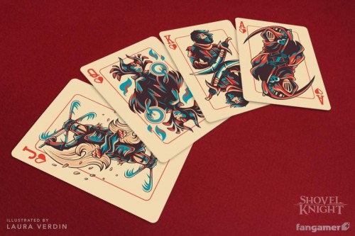 This official set of Shovel Knight playing cards were designed by Fangamer's own Laura Verdin and produced by the US Playing Card Company, the same company responsible for Bicycle card decks.