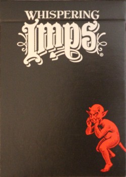This very exclusive and limited deck of Whispering Imps® was designed with elegance, class and sophistication in mind. Printed by Clove St. Press in San Diego, the custom letter-pressed tuck case is made up of a heavy eggshell matte paper stock, hand selected and embossed to accompany the highly detailed artwork made up of beautiful rose gold foils and Pantone inks. By far the highest quality tuck box ever printed for the Whispering Imps®. Playing cards manufactured to the highest printing standards by the U.S. Playing Card Company. LESS THAN 500 MADE.