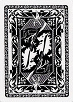 This deck was designed by magician Hiro Sakai, and it features very subtle one-way backs. Printed on Bicycle stock with Air Cushion finish, in black and yellow versions, with standard Bicycle faces. Comes with 2 Jokers, a double backed gaff card, and a double faced gaff card.