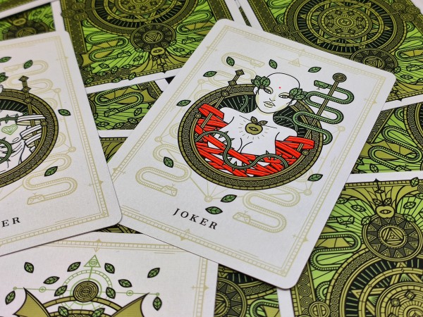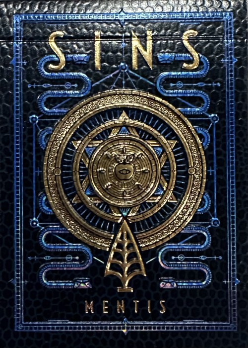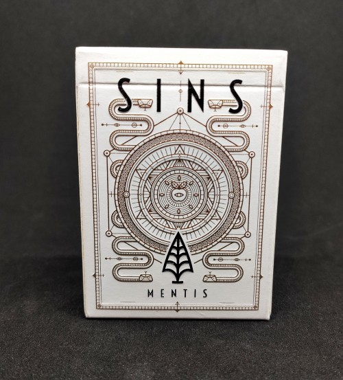 Symbology about the backs and the decks The backs of SINS represents Eden, the place where the first Sin happened. In SINS Mentis, Eve was planning to eat the Apple of Knowledge, but she didn't actually do that - so Eden was bright. In SINS Corpus, Eve ate the Apple and she was banned. Without her and Adam, an eternal night fell on Eden. This means, chronologically, that SINS Corpus happened after SINS Mentis. In SINS Anima, Adam and Eve realized they're the first two humans in the world. They are banned, frail and mortal. But after they ate the Apple, they also are full of self-knowledge. They became the first two dreamers. Eden is now empty and is red. Red like blood and hell fire - but also red like the heart, passion and life. The three decks also represents the philosophy behind the name Thirdway Industries: thesis, antithesis, synthesis.COMPANY:Thirdway Industries