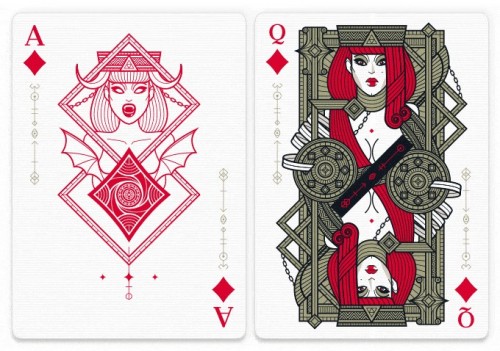 Eva is a limited deck from Thirdway Industries, designed by Giovanni Meroni. It is considered a spin off of the SINS deck. The court cards are the first women of different cultures.