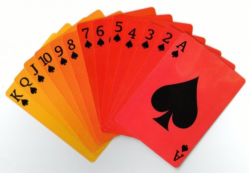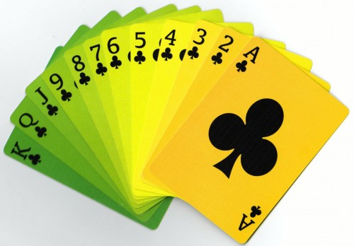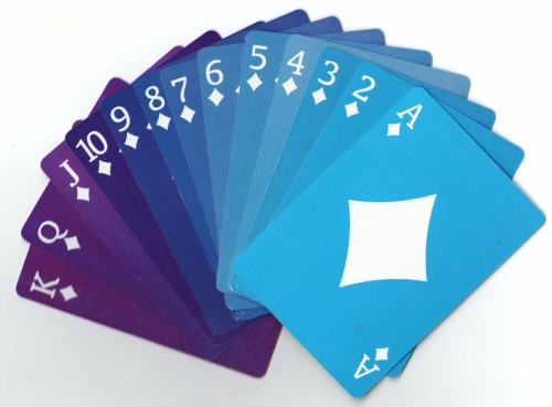 Rainbow Playing Cards - Made in China - Exclusive distribution by 5 Below / Five Below stores. All cards have the same back but each face is a different color. (From box: Date Code: 10741718 - FB10433)