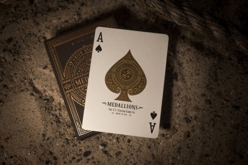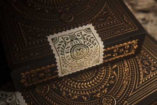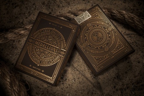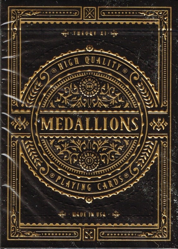 Medallion Playing Cards offer a blend of sheer elegance and striking beauty. A timeless object infused with supreme luxury from the Victorian era. The design is accented by embossed stitch elements in the front and sealed with theory11's signature precision printed gold foil sticker seal.