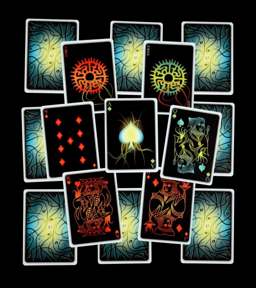Tendril uses some brand new ideas in playing card design. The Tendril deck was designed to produce a whole new playing card look that is both beautiful, unique and usable. Magicians, cardists and collectors alike will find something to appreciate in Tendril.
