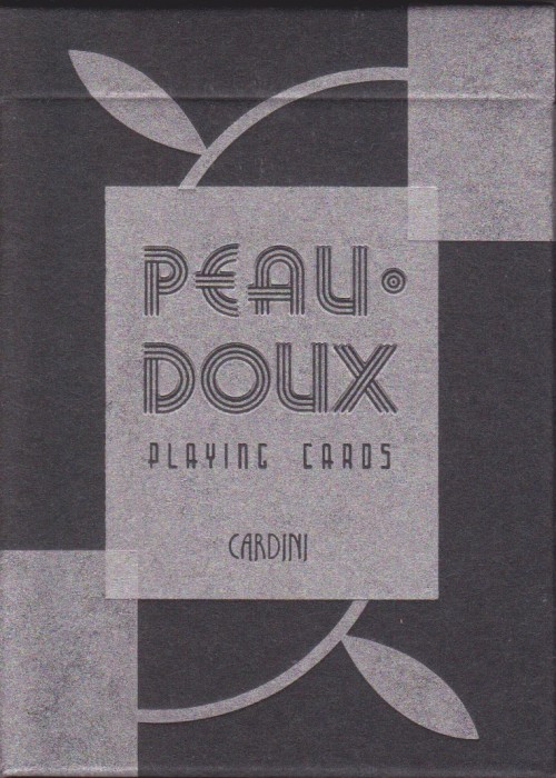 This deck is a modern poker-sized replica of the special Peau Doux playing cards Cardini used in performance of his legendary nightclub act "The Suave Deceiver." Special features include a vintage-inspired tuck box, letterpress-printed with gold metallic ink and embossed typography. Custom tax stamp, ace of spades, and matching jokers depicting a silhouette of Cardini illustrated by Wade J. Callender.