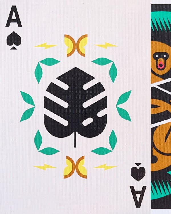 The deck includes 52 custom faces; literally every single card features vibrant, colorful, original artwork on every square inch.