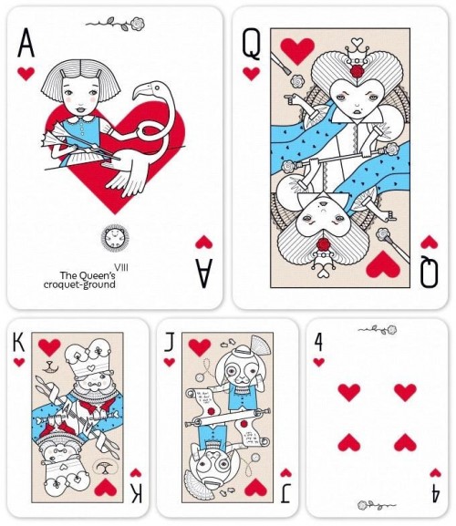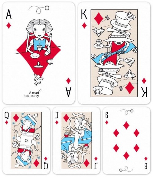 A fully custom deck, illustrated with characters from Lewis Carroll’s iconic “Alice in Wonderland”. The cards are designed in a way that covers almost all main characters and key scenes.