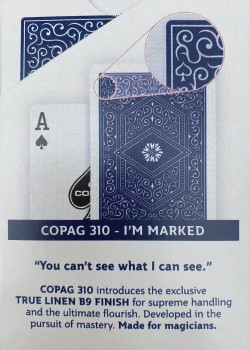 COPAG 310 introduces the exclusive TRUE LINEN B9 FINISH for supreme handling and the ultimate flourish. Inspired by you. Developed in the pursuit of mastery. Made for players, cardists and magicians.