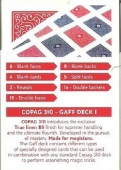 COPAG 310 is developed closely together with expert players, cardists and magicians for over two years. The exclusive TRUE LINEN B9 FINISH of the COPAG 310 deck ensures supreme handling and longevity, and is developed specifically for the pursuit of the perfect sleight and the ultimate flourish. This finish is the result of intense R&D and more than 300 prototypes, tried and tested. This to create a deck ready to use straight out of the box. The soft but springy nature of the cards, and the smoothness of handling, lie in a carefully constructed balance between stock, coating, linen finish and cutting. Tailored to your needs.