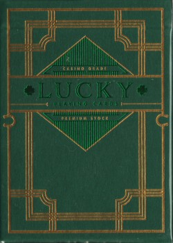 Fully Custom St. Patrick’s Day themed court feature along with a beautiful custom AOS and Identical Jokers. Clover pips are used in place of Clubs, as well as unique metallic gold and metallic green suits rather than traditional black and red.