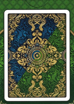 The Back Cards are our splatter painting composite in its truest form. The colors are bold and interesting. The Ace of Spade, like the Tuck Box, mimics a Painting in a Gallery setting. The semi-custom Face Cards incorporate various color combos of the splatter painting composite, and create a cohesive look for the rest of the Deck.