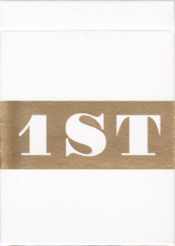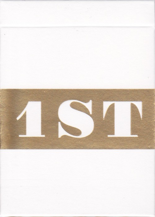 This deck will come in stack and comes complete with a custom design, re-coloring of face cards using metallic ink and custom jokers. You will also receive one blank card as well as a duplicate. The foil "1st" running right to the edges is something brand new which has never been done in the history of USPCC, and offers a beautiful result when fanning or spreading the deck. Together , these elements create a subtle yet strikingly bold and attractive design.