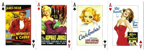 Covering B-Movies to blockbusters, each card captures and focuses on, the amazing art that used to entice to see the movie, no matter how bad it was! In the deck you will find movies such as Rebel Without A Cause, M, The Seven Year Itch, Forbidden Planet, Top Hat, Moulin Rouge, Beau Geste, Casablanca and many more.