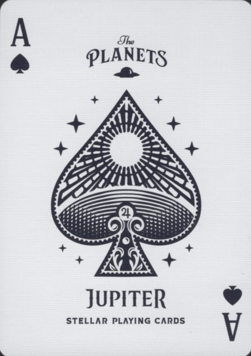 The Planets is a collection of decks representing the planets in our solar system, starting closest to the sun and moving outwards into the surrounding universe. This is the most luxurious Vanda deck series to date. The fifth deck of this series is Jupiter, featuring one-eyed bull-like creatures.