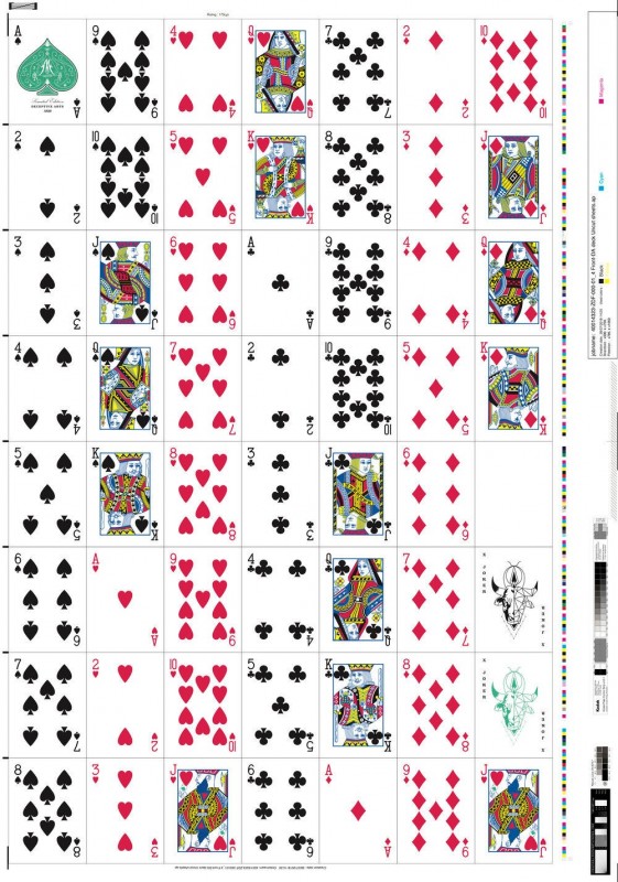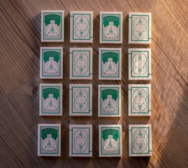 Limited to 1,500 and printed by Cartamundi on Copag 310 stock with their True Linen B9 Finish. All decks include a blank face card and a duplicate Jack of Hearts.