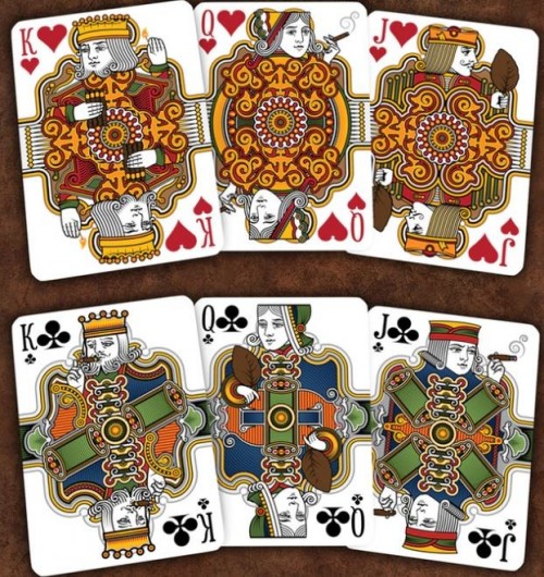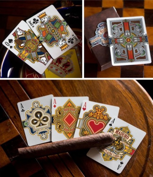 Maduro Playing Cards are a collection of hand illustrated playing cards that are designed in the colorful style of cigar band and cigar box art. Each court card is hand illustrated using uniquely original designs that set the Maduro Playing Cards apart from your everyday deck of playing cards. If you would like a deck of playing cards that is something truly unique then the Maduro Playing Cards have the perfect blend of tradition and style to make your next cardgame a truly unique experience.