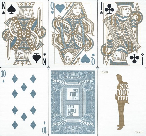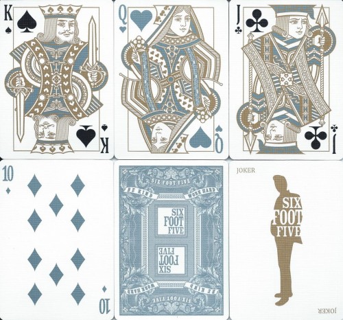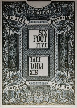 The Six Foot Five deck is a very limited run of 250 decks. Each deck comes hand numbered. The cards were printed by The Expert Playing Card Company and the tucks case was intaglio engraved by Artistry Ink Engraving and Embossing.