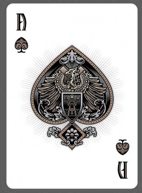 The most famous manufacturer of premium playing cards for casinos, The United States Playing Card Company, designed and produced a limited collection of playing cards for Garibaldi Castle. Designers reflected every bronze sculpture of Garibaldi Castle, trying to convey the image of each knight, and also their mood, reflect the atmosphere, and the magical image of the Castle. King Arthur and Queen Guinevere took the place of the King and Queen. Joker places were taken by Beowulf and Galahad. The design of the package also used guards of the eastern entrance griffins Cras and Gester. The deck consists of 56 cards.
